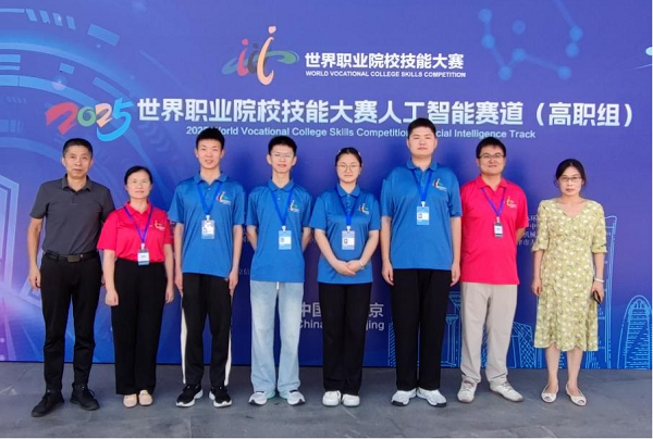 (本网讯 唐娟 胡长江)9月4日至9日,2025年世界职业院校技能大赛总决赛“人工智能”赛道(高职组)在北京中关村国家自主创新示范区展示交易中心举行。“人工智能”赛道是今年新设赛道,包含高中组(64个参赛队)、中职组(64个参赛队)、高职组(128个参赛队)、职业本科组(64个参赛队)、普通本科组(64个参赛队)等5个类别,共380多个参赛队,是规模最大的一个赛道。信息工程学院唐娟、胡长江老师指导,罗贝、张书强、高望、王宁等4名学生组成的代表队,凭借“乐弈棋伴”项目的出色表现,荣获银奖。