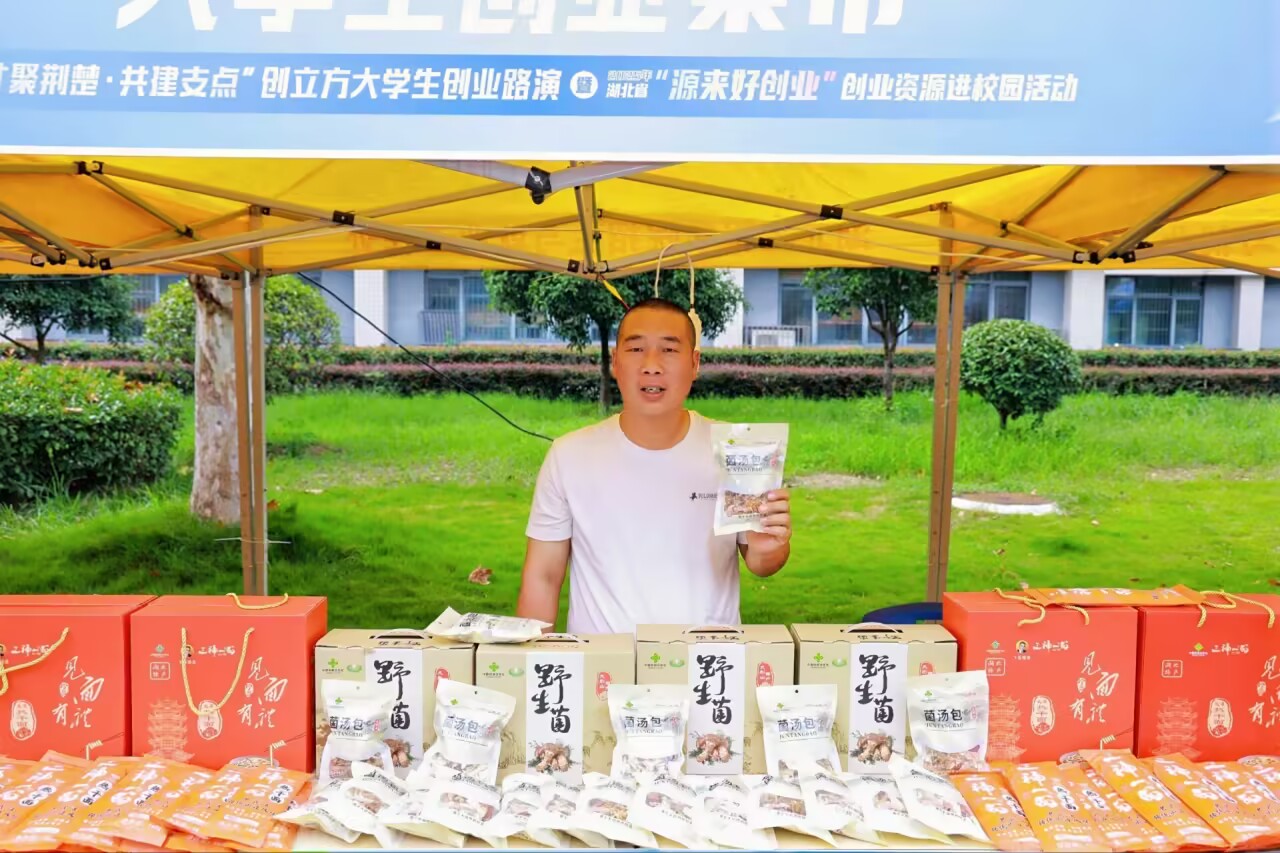 湖北弘孝农业科技股份有限公司是我校财经与旅游学院2023届优秀毕业生熊文文创办的科技型企业。湖北弘孝农业科技股份有限公司携系列产品参加了本次大学生创业集市活动。熊文文在获得全日制大学本科文凭后,进入我校学习,扎根大别山,弘扬中华孝文化、创新创业文化和大别山精神,有形有感有效铸牢中华民族共同体意识,带领乡亲共同致富,获评“中国网事”感动人物。
