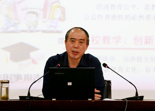 4月27日下午,学校2016年上半年“形势与政策”教育首场报告会在图书馆学术报告厅举行,学校党委书记蔡诗红为师生代表作了题为《全面建成小康社会实现第一个百年目标》的辅导报告。宣传部、学工处、团委、汽车学院、思政课部的负责人和全体思政课教师、院部辅导员,以及300多名师生代表聆听了报告,报告会由学工处处长丁浙英主持。