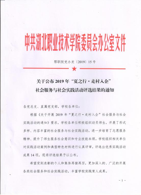 关于公布2019年“夏之行•走村入企”社会服务与社会实践活动评选结果的通知