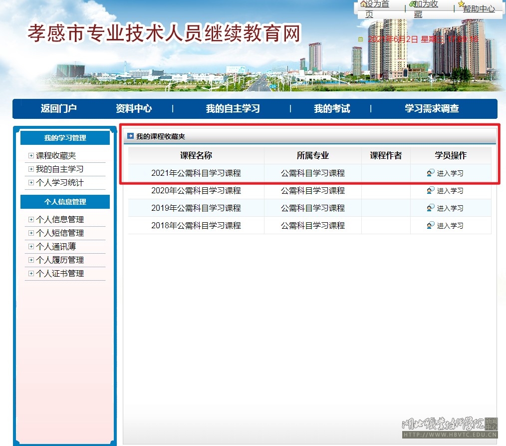 2021年度全市继续教育公需科目培训已经开始,今年公需科目培训同去年一样,统一采用孝感市专业技术人员继续教育网培训平台进行在线学习,网上培训学习时间为5月15日-10月31日。