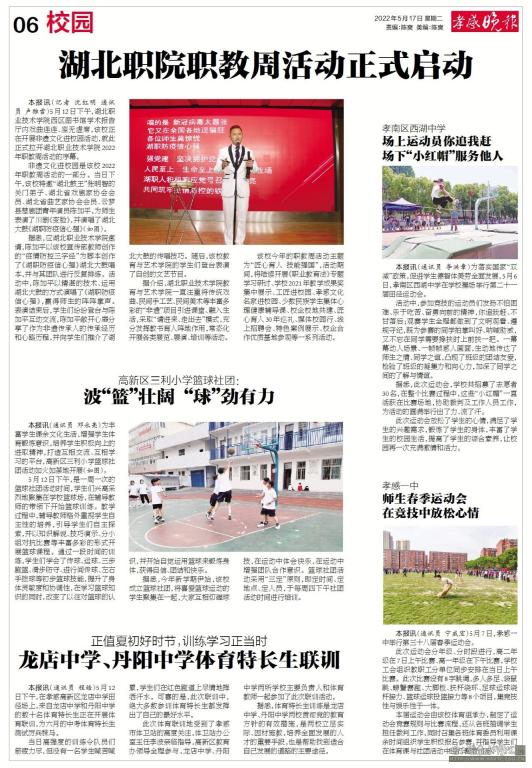该校今年的职教周活动主题为“匠心育人 技能强国”,活动期间,将陆续开展《职业教育法》专题学习研讨、学校2021年教学成果奖集中展示、工匠进校园、孝感文化名家进校园、少数民族学生集体心理健康辅导课、校企校地共建、匠心育人30年巡礼、媒体校园行、线上招聘会、特色案例展示、校企合作优质基地参观等一系列活动。