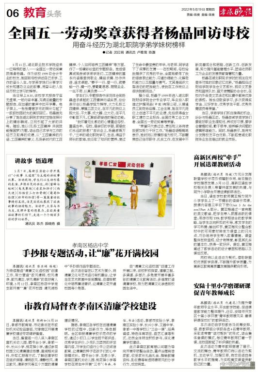 据介绍,杨晶于1999年进入湖北职院财经学院会计专业学习,毕业后入职维达护理用品(中国)有限公司,从普通员工到财务经理、工会主席,她在平凡岗位上创造不平凡的业绩,先后获得省女职工建功立业标兵、全国优秀工会工作者、全国五一劳动奖章等荣誉。