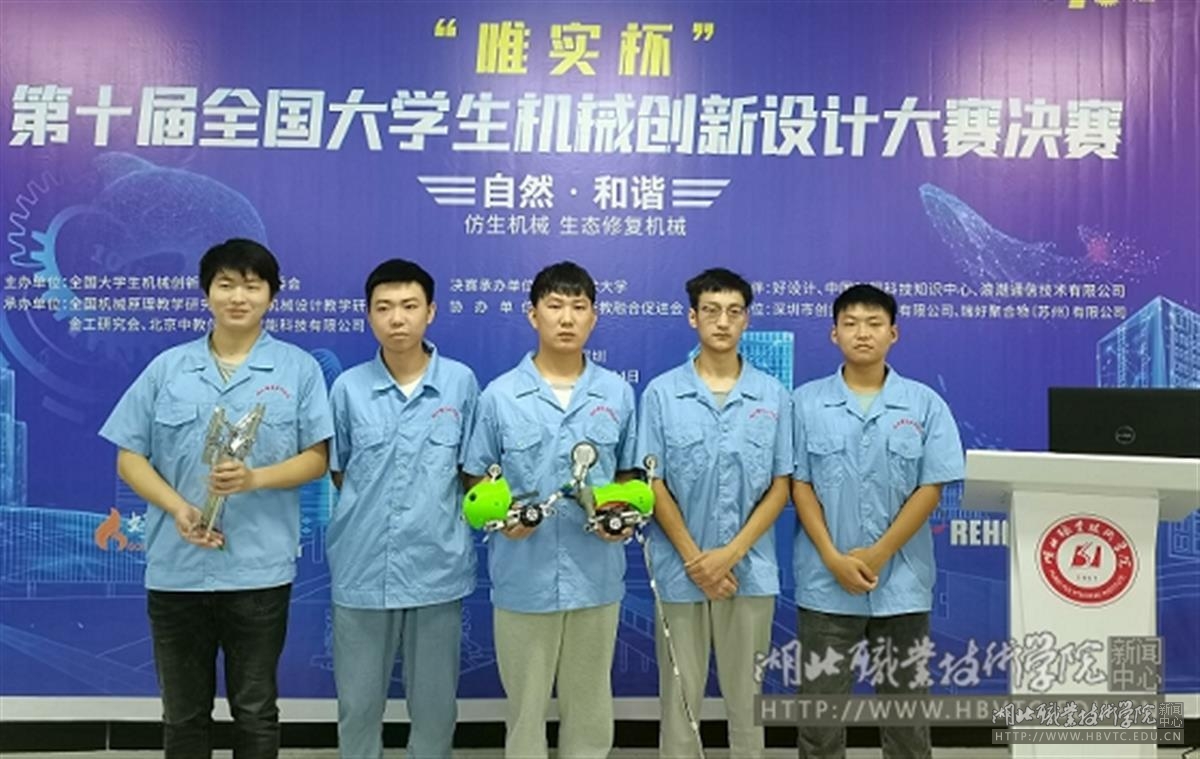 8月22日至23日,“唯实杯”第十届全国大学生机械创新设计大赛决赛在深圳举行,由江南官方注册_江南(中国)官方机电工程学院朱志强、范锦峰老师指导,杨禄桥、赵令、王冲、张言、黄帅研制的参赛作品“一种攀杆爬管清淤毛毛虫”勇夺全国一等奖,这也是该校第三次在该项重要赛事荣获全国一等奖。