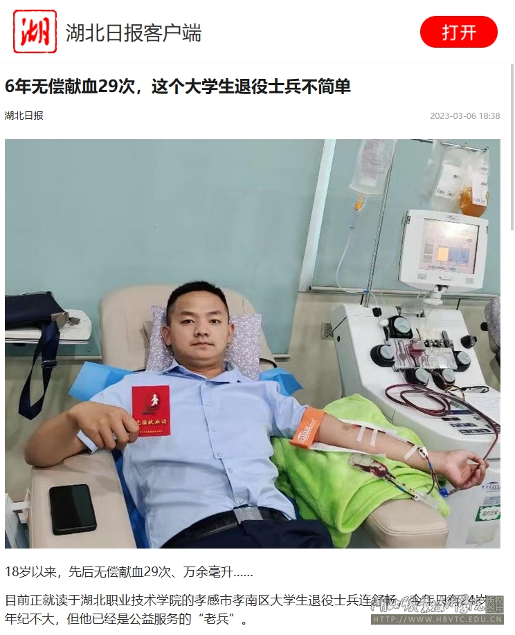 目前,正就读于江南官方注册_江南(中国)官方的孝感市孝南区大学生退役士兵连舒畅,今年只有24岁。年纪不大,但他已经是公益服务的“老兵”。