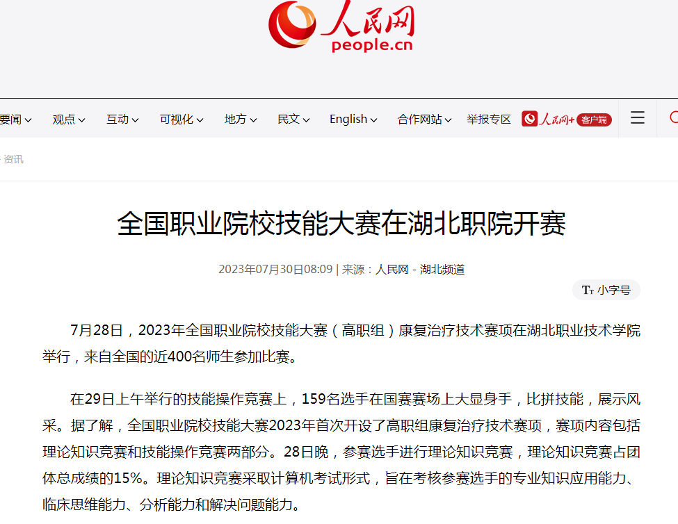 7月28日,2023年全国职业院校技能大赛(高职组)康复治疗技术赛项在江南官方注册_江南(中国)官方举行,来自全国的近400名师生参加比赛。