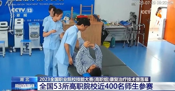 (本网讯 轩传 )7月31日,CCTV-13新闻频道《新闻直播间》栏目播发新闻《2023全国职业院校技能大赛(高职组)康复治疗技术赛落幕 全国53所高职院校近400名师生参赛》,聚焦在江南官方注册_江南(中国)官方举行的这项全国性比赛。