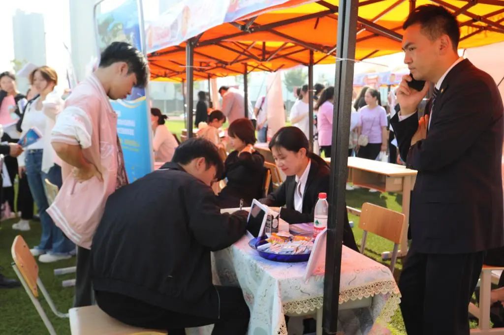 招聘会现场气氛十分热烈,3000余名2024届毕业生参加了线下招聘会,3000人次参与线上同步举办的“直播带岗”活动。求职的同学在各展位间穿行,积极寻找心仪的企业和岗位,约2300名学生达成初步就业意向。来自建筑装饰工程技术专业的周涛同学表示“这次学校组织的招聘会规格高、企业多,给了我非常多的选择,能在秋招找到合适的岗位,是我大三伊始的一大目标,今天的招聘会我已经收到了3家建筑装饰相关企业的offer,感谢学校让我的职业生涯开启了一个非凡的序章。”