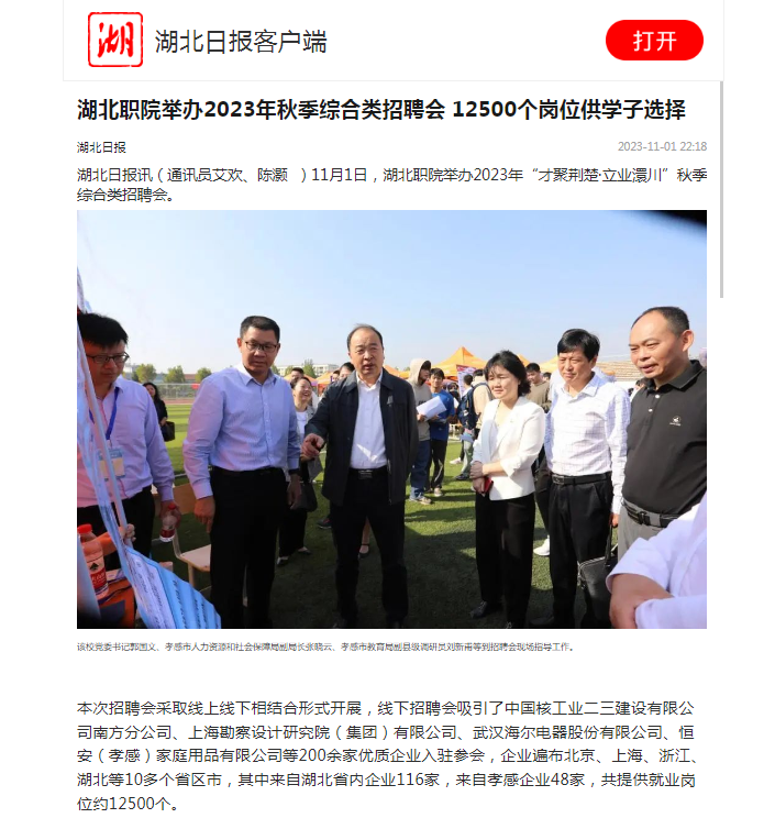 【湖北日报】湖北职院举办2023年秋季综合类招聘会 12500个岗位供学子选择