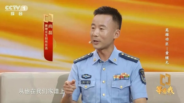 在《等着我》栏目演播室访谈环节,展示了黄继光母亲邓芳芝受毛泽东主席接见等珍贵影像资料;黄继光侄子黄忠凯、黄继光生前所在部队的尚磊等,讲述黄继光精神的传承故事。