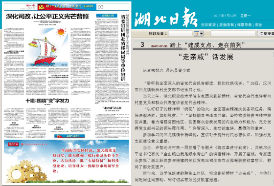 当日,许智还与村民一同观看了专题片《将改革进行到底》,并就习近平总书记有关“金山银山就是绿水青山”的讲话精神,开展了座谈。专家团还参观了湖北职院参与援建的光伏发电站和生态农业园等脱贫致富项目,慰问了部分贫困户。