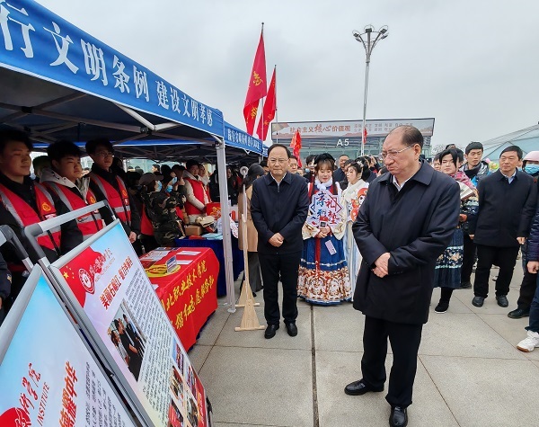 市委书记胡玖明,市委常委、宣传部长吴琼等参观荆楚石榴红志愿服务队成果展