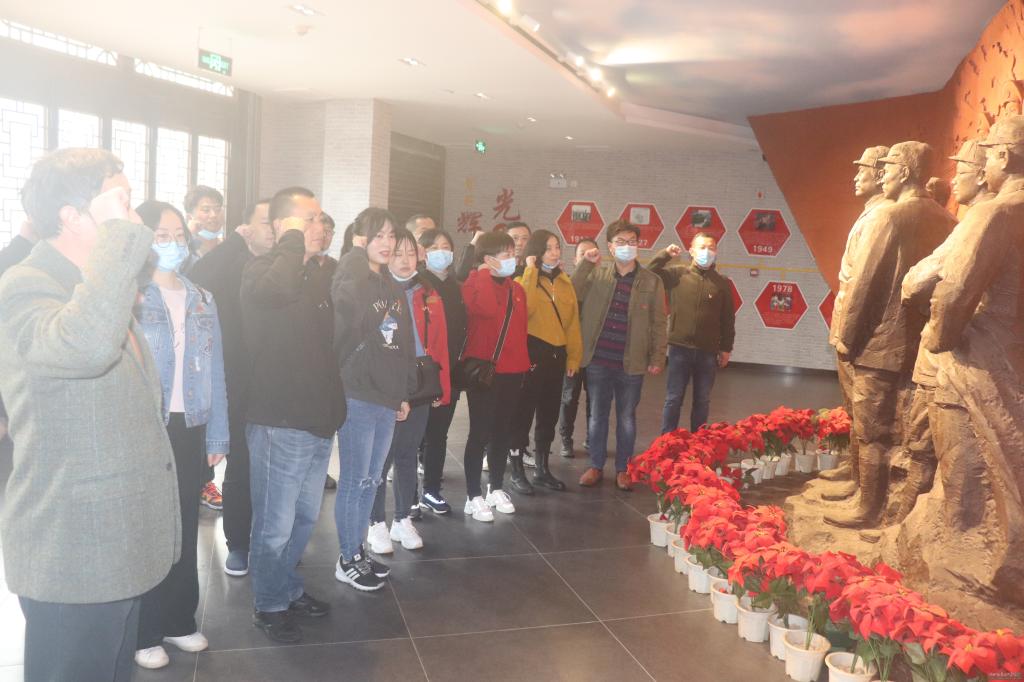 在武汉市黄陂区姚家山新四军第五师陈列馆,全体党员重温了入党誓词,在纪念馆讲解员的带领下认真观看陈列馆六个部分的主题展,同志们在大量历史图片和珍贵文物前驻足,仔细聆听每—个感人悲壮的战斗故事,通过展室里的文字、图片、实物样品等真实了解了新四军第五师在抗战时期那段百折不挠、骁勇善战的光辉历史。在双峰山滑石村,我校驻村干部夏育斌同志介绍了该村脱贫攻坚以来的建设成果,带领大家参观了滑石冲村纯净水厂、生态茶园、途居露营地,以及依托美人谷、青龙洞、石凤翔故居等的旅游资源正在建设中的生态旅游项目,并实地走访脱贫户。参观后,同志们分享了参观感悟和学习体会。