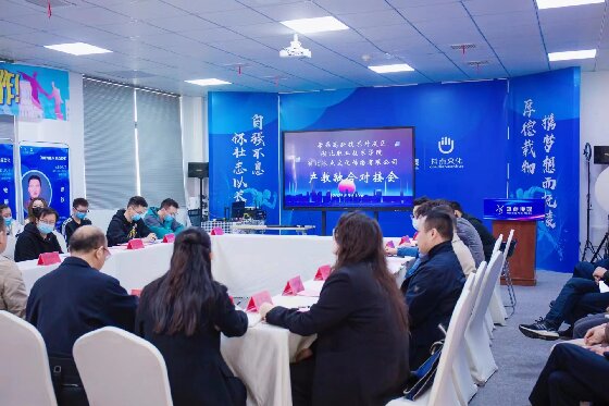 冰点传媒总经理董俊对大家的到来表示了热烈的欢迎,介绍了冰点传媒文化传媒有限公司的相关情况,并对与江南官方注册_江南(中国)官方的产教融合模式及成果做了汇报,同时将新媒体电商产业学院对区域企业的服务模式做了一个介绍,希望高新区企业后期能够在用工与产业链构建方面多与产业学院交流合作。