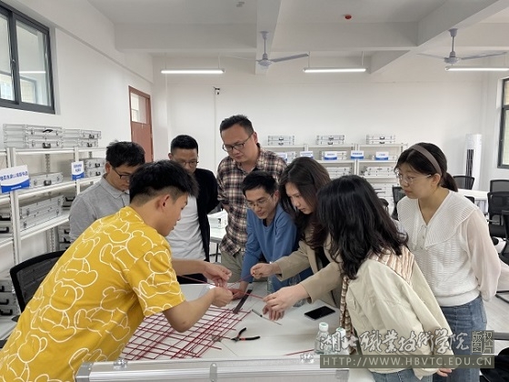 本次培训会分两个阶段进行,第一阶段由湖北平步科技有限公司进行《建筑工程计量与计价》《建筑设备与识图》《建筑工程安全管理》《建筑施工技术》4门课程虚拟仿真资源运用培训,重点演示了4门课程的虚拟资源类型和使用方法,主要包括视频微课、4D微课、游戏闯关任务、虚拟工地场景、仿真实训练等资源的应用。如《建筑施工技术》课程以真实工程为案例,以施工进度为实训任务主线,真实再现工程施工全过程,实训流程环环相扣,实训过程由浅及深,破解了真实工程中的“三高三难”问题。第二阶段由小别(武汉)科技有限公司进行钢筋绑扎操作实训培训,参训教师分成两组进行结构节点钢筋绑扎操作,以此提升教师实践动手能力,实现“让课堂活起来、使学生动起来”。