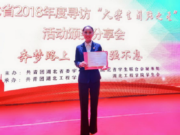 姚苗新获评中国大学生自强之星、湖北省大学生自强之星称号