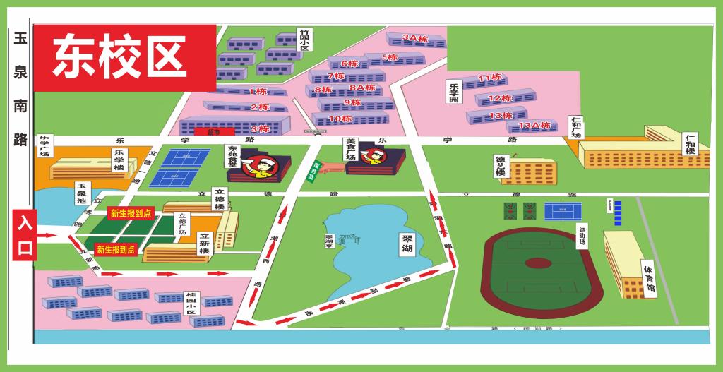 东校区立德广场:财经与旅游学院、护理学院、卫生技术学院、医学院、口腔医学院、机电工程学院(机电一体化技术、数控技术、新能源装备技术、电子信息工程技术等4个专业,其余专业学生前往南校区报到)