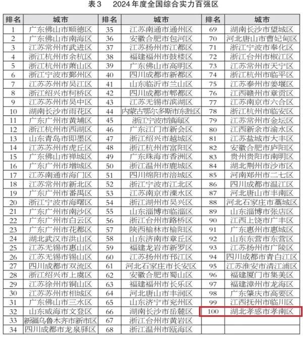 孝感市孝南区获评全国综合实力百强区第100名