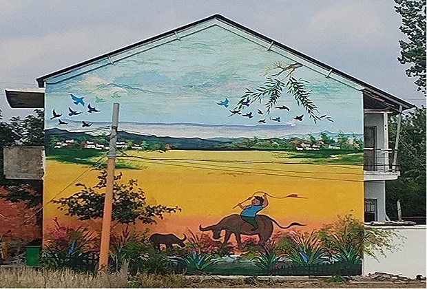 村民徐某摸着未干的墙面感慨:"这麦浪比我田里的还要金灿,放牛娃的眼神就像我家小孙子。"艺术与乡土的共鸣,在墙面与心田间悄然生长。