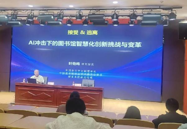 在培训会上,超星集团副总经理叶艳鸣带来“接受&逃离-AI冲击下的图书馆智慧化挑战与变革”主题讲座。叶艳鸣结合ChatGPT、DeepSeek等前沿生成式人工智能技术及AI聊天机器人的发展,深入剖析了图书馆行业正经历的创新变革浪潮。从AI检索、AI阅读等智慧服务,到视觉编目、AI盘点等智能管理手段,再到AI荐购、AI翻译及智能导航等多元化应用,一幅充满科技感与创新性的新一代图书馆智慧服务新图景徐徐展开。