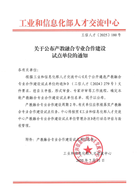 (本网讯 胡明亮)近日,工业和信息化部人才交流中心发布《关于公布产教融合专业合作建设试点单位的通知》,我校数控技术专业经自主申报、形式审查、专家评审等流程成功入选。这标志着我校在深化产教融合、提升人才培养质量上迈出重要一步,对共建产教融合深度合作平台、构建发展新生态及推动该专业高质量发展意义重大。