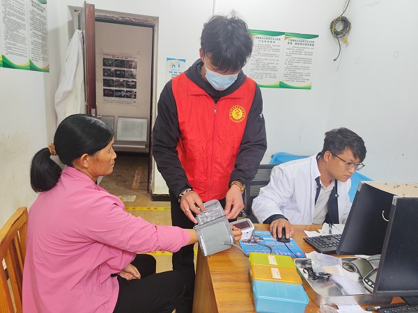 李鸿涛还负责登记信息、分发药品,忙碌却充实。他说:“看着乡亲们从愁容满面到眉头舒展,我才真正明白‘医者仁心’四个字的分量”。这场身体与心灵的双重奔赴,不仅加深了他对医学专业的理解,更让他体会到“为家乡做实事”的踏实与快乐。