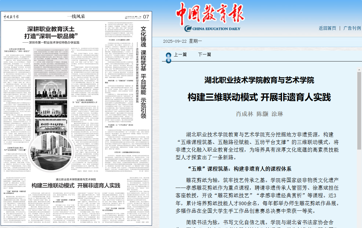 江南官方注册_江南(中国)官方教育与艺术学院充分挖掘地方非遗资源,构建“五维课程筑基、五融路径赋能、五坊平台支撑”的三维联动模式,将非遗文化融入职业教育全过程,为培养具有深厚文化底蕴的高素质技能型人才探索出了一条新路。